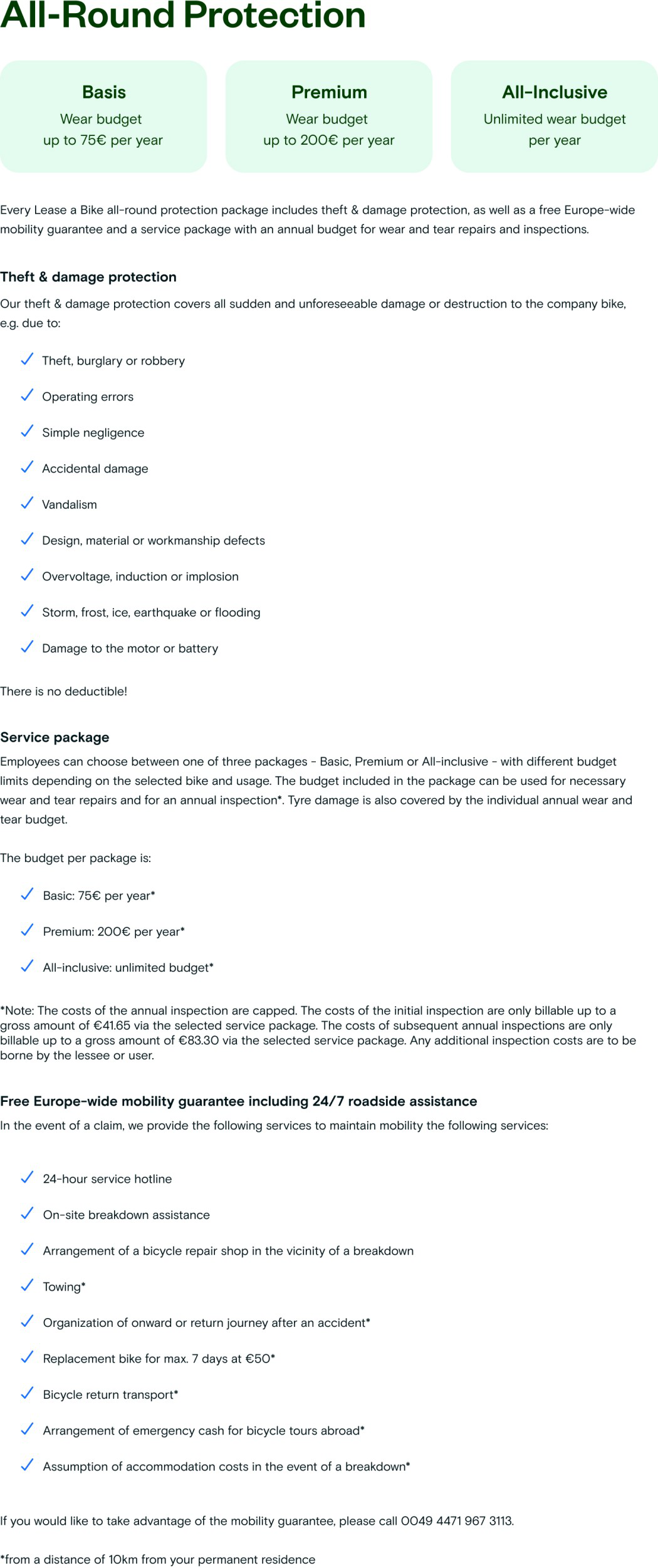 To maintain mobility, our company bicycles are covered by a free Europe-wide mobility guarantee.